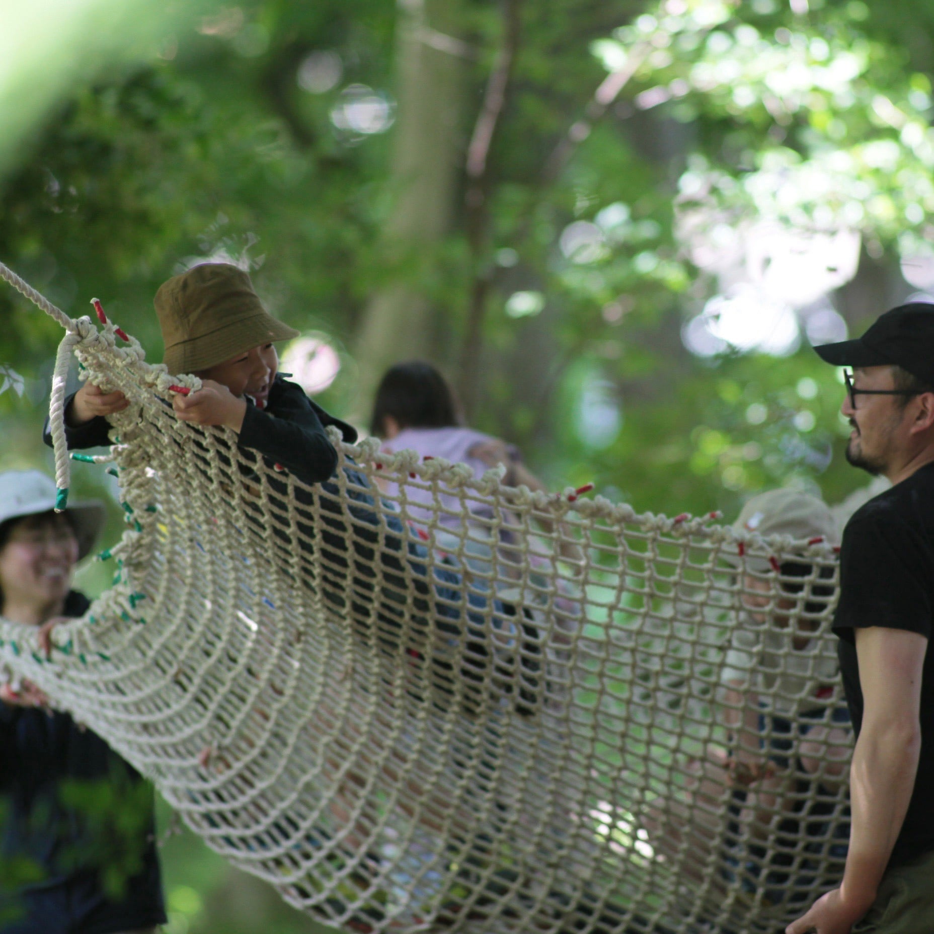 “遊びの主体は子どもたち”と思われがちなプレーパーク。もりとこでは大人の方へも『一緒に全力で遊びましょう!』と声がけを行っています。