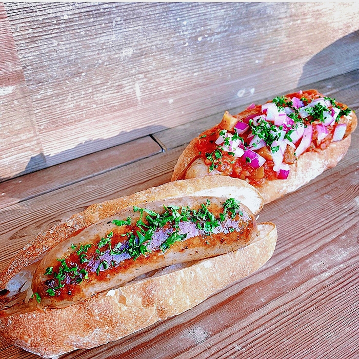 手作りのコッペパンに、焼きたての肉肉しい生ソーセージを挟んだホットドッグです。コッペパンは無添加で乳製品・卵不使用です。