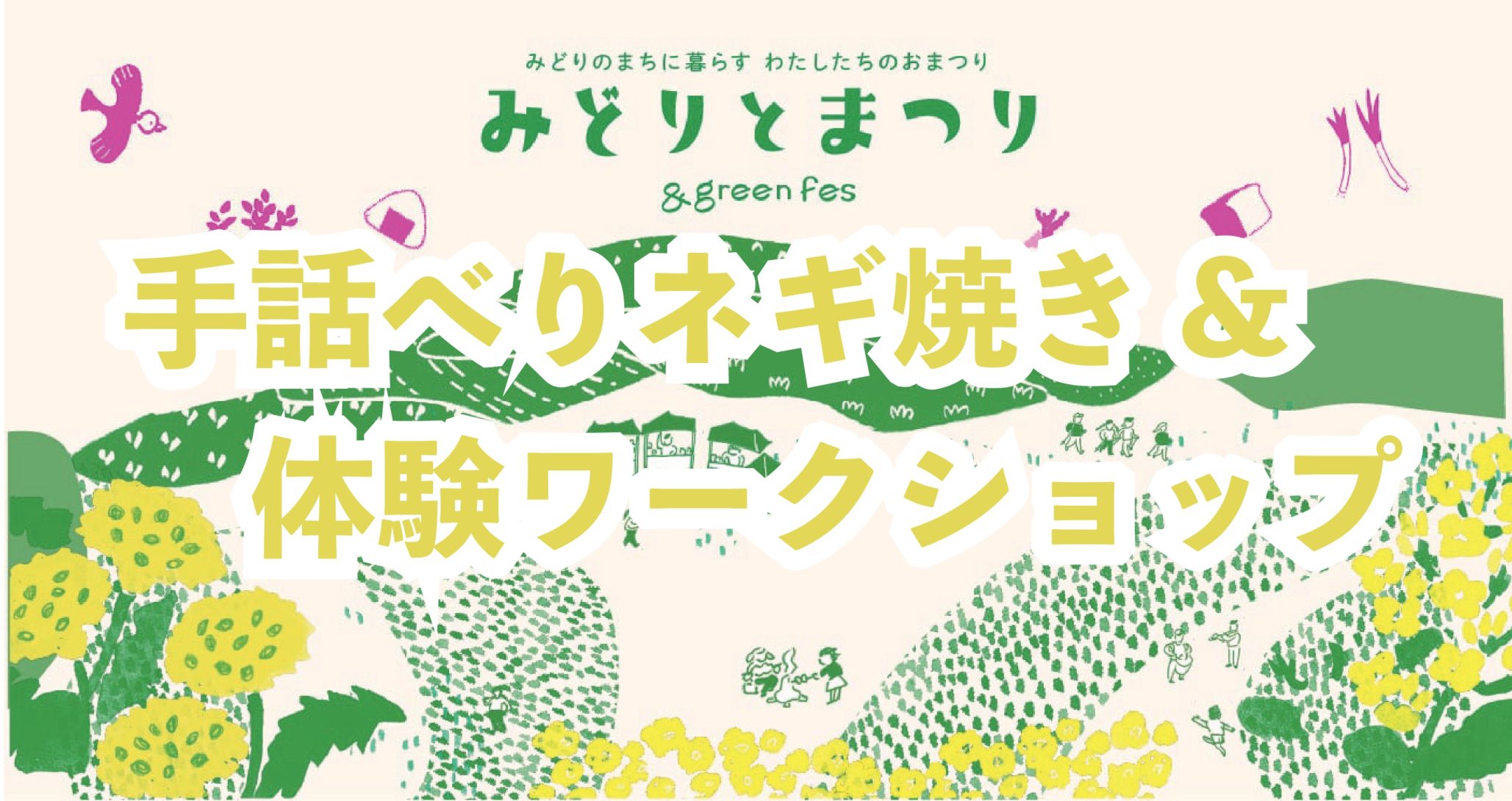 こちらのページでは、みどりとまつり2026で開催される、手話べり&ネギ焼き会場と各種体験企画やワークショップのご案内となります。魅力的な企画が盛りだくさんですので、みんなで一緒に北本の春を楽しみましょう~!