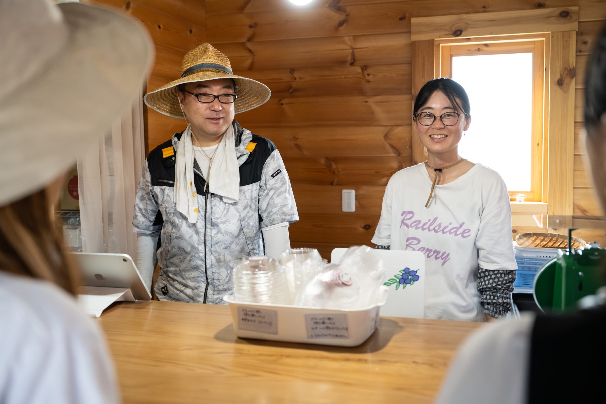 レイルサイドベリーのコンセプトは、「感覚を磨く」。お客さん自身が、様々なブルーベリーの見た目、香り、味わいの違いを楽しみ、自分好みの一粒を見つけられるように、自分の感覚と向き合う時間を大切にしています。オーナーの大澤さん奥様は「お客さんにとって、自分の感覚を研ぎ澄ます時間になれば。サービスというより、修行に近いかもしれませんね」と微笑みます。