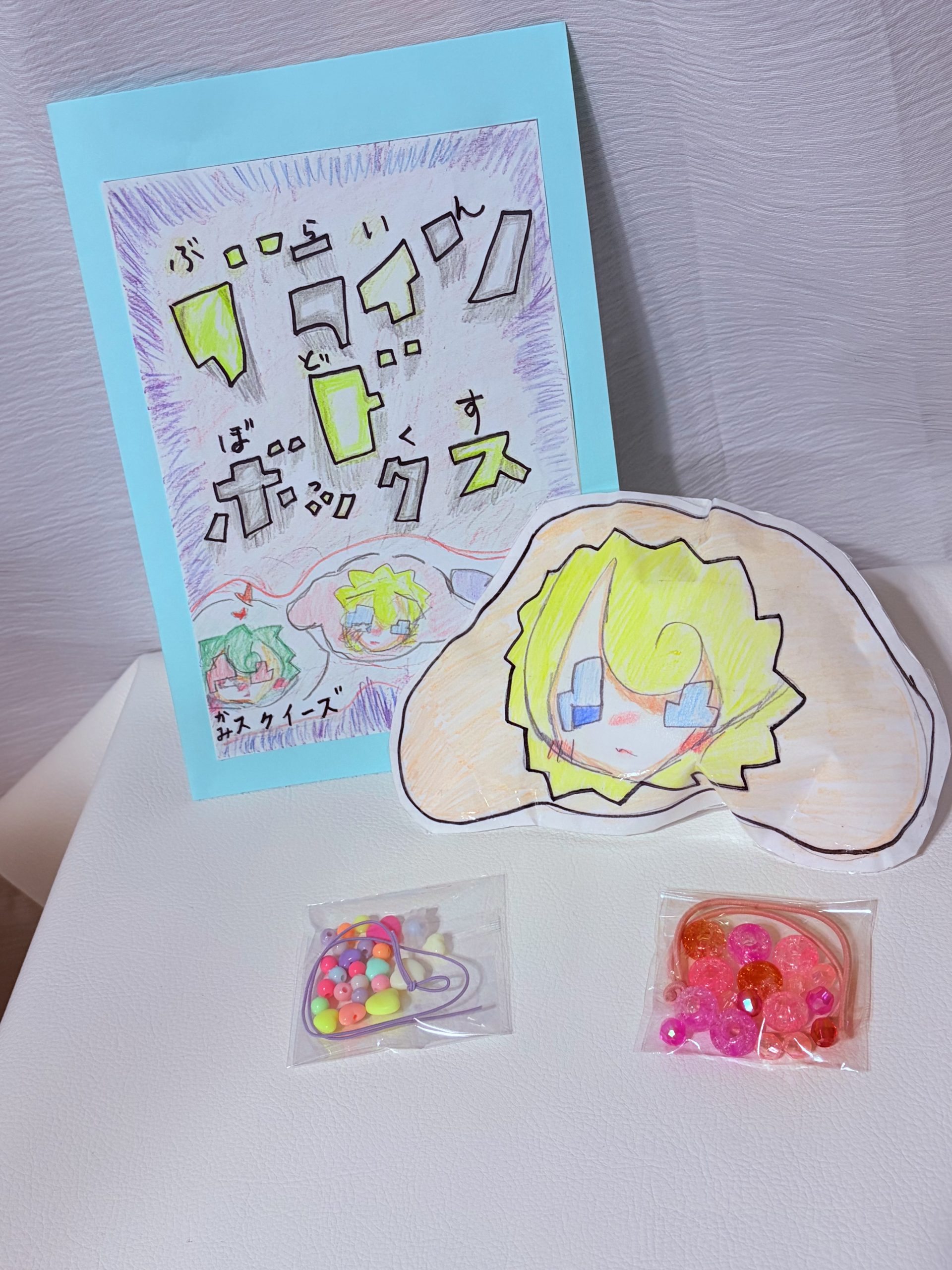 紙スクイーズのブラインドBOXの販売。中にはランダムで、オリジナルキャラクターの紙製スクイーズとカード、ブレスレットが作れるビーズセットが入ってます。準備が間に合えば、オリジナルポストカードも作りたいです。紙製スクイーズは、手触りがクセになる癒しアイテムです!どのキャラクターが入っているかお楽しみに!